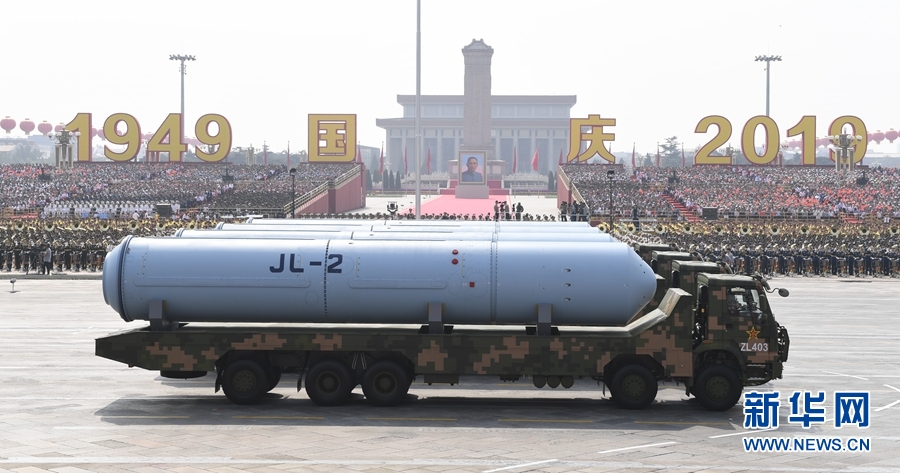 10月1日上午,慶祝中華人民共和國成立70周年大會在北京天安門廣場隆重舉行。這是巨浪-2導彈方隊接受檢閱。 新華社記者 高潔 攝