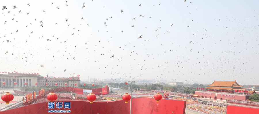 10月1日上午,慶祝中華人民共和國(guó)成立70周年大會(huì)在北京天安門廣場(chǎng)隆重舉行。這是天安門廣場(chǎng)上放飛和平鴿。 新華社記者 金立旺 攝