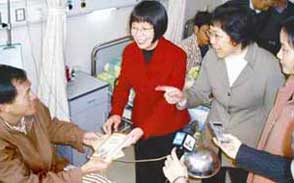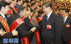 王兆國為獲獎代表頒發(fā)獎章和證書