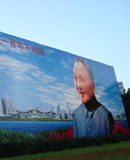 廣場一端的巨幅畫像上,改革開放的總設(shè)計師鄧小平身著淺灰色中山裝,堅毅地凝視著前方。畫面左上方寫著:“堅持黨的基本路線一百年不動搖?!?/a>