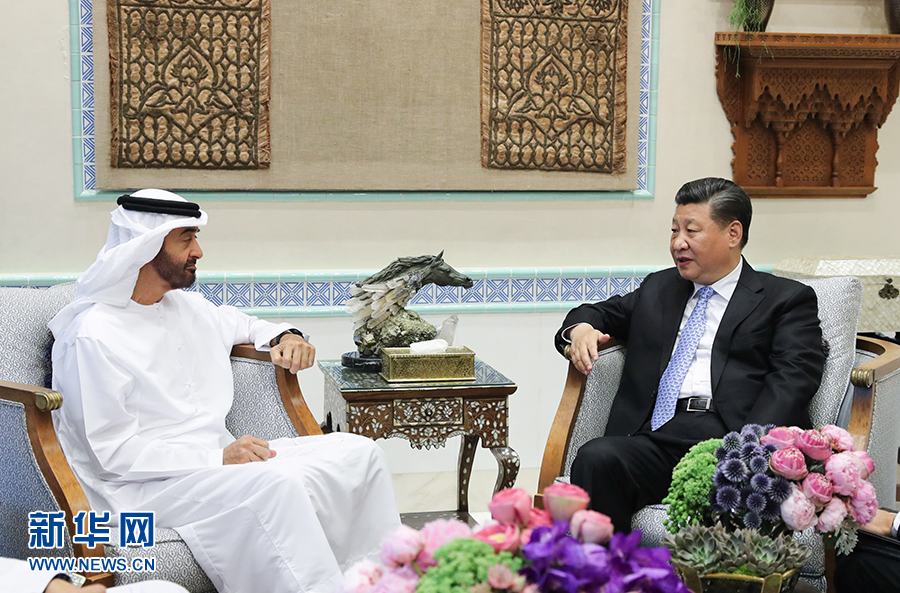 習(xí)近平愉快地回憶起中阿兩國(guó)友好交往的歷史。習(xí)近平指出,中阿傳統(tǒng)友好基礎(chǔ)扎實(shí)、歷久彌堅(jiān)。2015年王儲(chǔ)殿下訪華期間,我們共同規(guī)劃中阿關(guān)系發(fā)展藍(lán)圖,開啟了中阿關(guān)系新篇章。我這次訪問(wèn)阿聯(lián)酋,我們雙方達(dá)成新的廣泛共識(shí),我深感兩國(guó)發(fā)展全面戰(zhàn)略伙伴關(guān)系順應(yīng)潮流,大有可為。雙方要深化全方位合作,為兩國(guó)關(guān)系長(zhǎng)遠(yuǎn)發(fā)展打下堅(jiān)實(shí)基礎(chǔ),推動(dòng)中阿全面戰(zhàn)略伙伴關(guān)系行穩(wěn)致遠(yuǎn)。