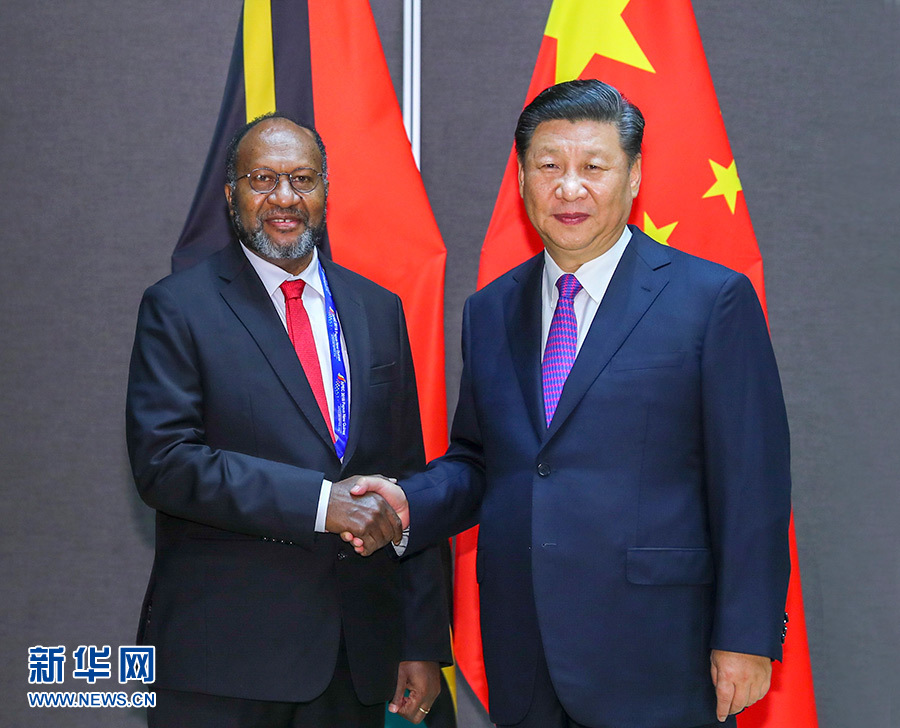 11月16日,國家主席習近平在莫爾茲比港分別會見建交太平洋島國領導人。這是習近平會見瓦努阿圖總理薩爾瓦伊。 新華社記者 謝環(huán)馳 攝