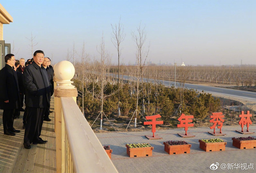 雄安新區(qū)堅持生態(tài)優(yōu)先、綠色發(fā)展,率先啟動生態(tài)基礎設施建設和環(huán)境整治,目前已完成11萬畝“千年秀林”建設。16日下午,習近平總書記來到“千年秀林”大清河片林一區(qū)造林區(qū)域,乘車穿行林區(qū)察看林木長勢,登上秀林驛站二層平臺遠眺林區(qū)全貌,同當地護林員代表親切交流。他說,藍天、碧水、綠樹,藍綠交織,將來生活的最高標準就是生態(tài)好。雄安新區(qū)過去有一定的基礎,現(xiàn)在搞“千年秀林”,將來這里一定是最宜居的地方。綠水青山就是金山銀山,雄安新區(qū)就要靠這樣的生態(tài)環(huán)境來體現(xiàn)價值、增加吸引力。(記者張曉松、謝環(huán)馳、鞠鵬)?