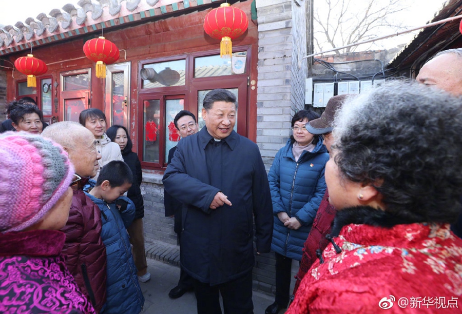 2月1日上午,習(xí)近平來到前門東區(qū),沿草廠四條胡同步行察看街巷風(fēng)貌,聽取區(qū)域規(guī)劃建設(shè)、舊城保護(hù)整治、人居環(huán)境改善等情況介紹,先后走進(jìn)兩個四合院看望,同這里的居民一起包餃子、炸饹馇、貼“福”字、聊家常,仔細(xì)詢問住房環(huán)境有沒有改善、年貨備齊沒有、生活還有什么困難,祝他們生活幸福、新春快樂。四合院里笑語歡聲,習(xí)近平對他們說,中國共產(chǎn)黨的追求就是讓老百姓生活越來越好。(記者張曉松、鞠鵬)
