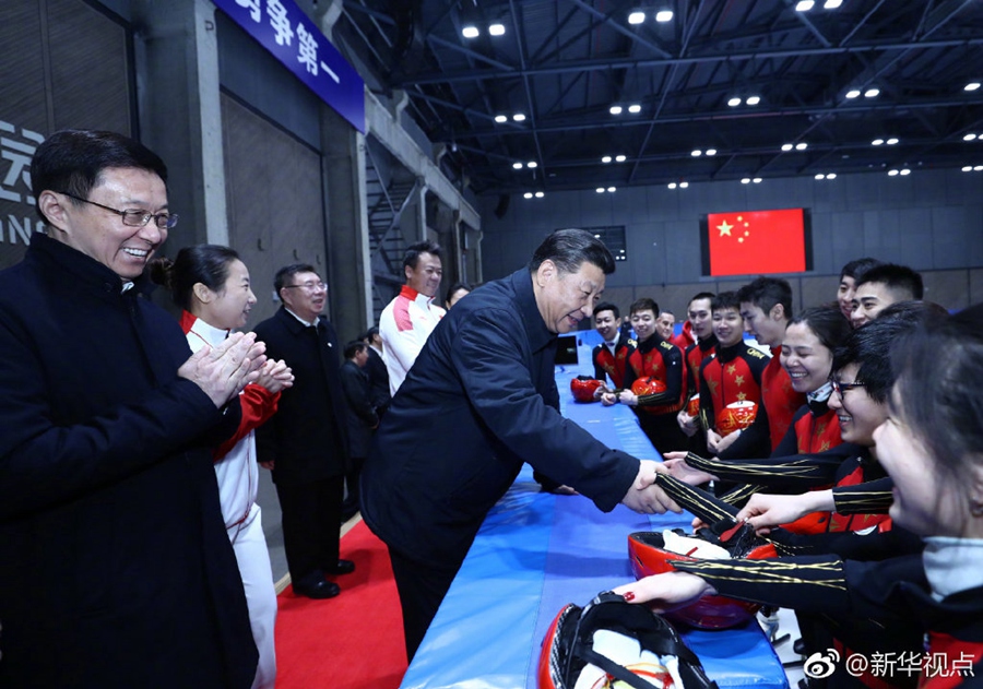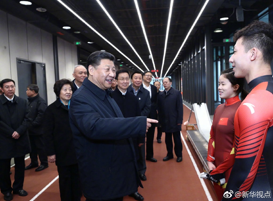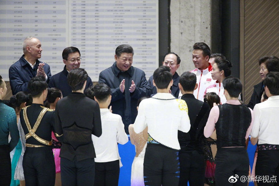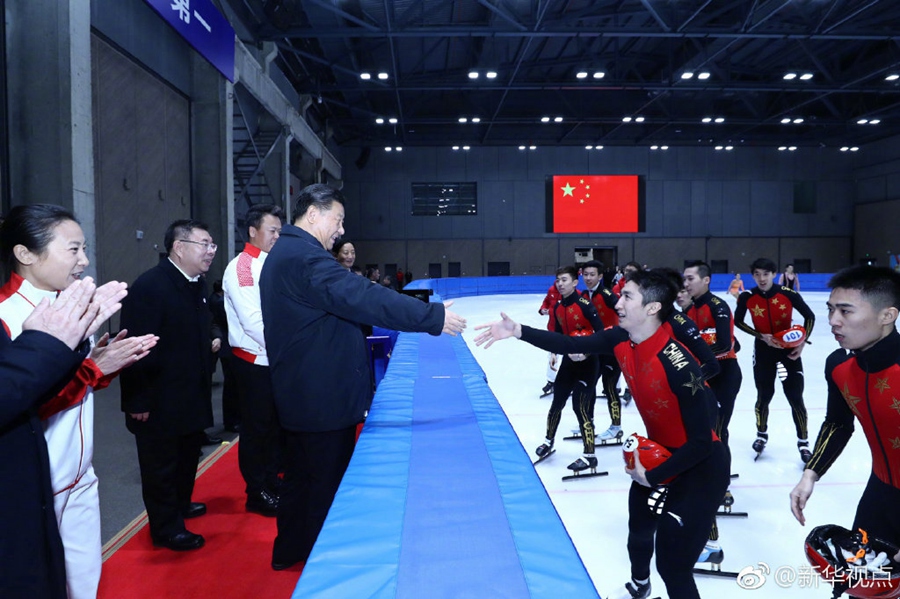 在位于北京石景山首鋼園區(qū)的國家冬季運動訓練中心,習近平先后走進速滑館和冰壺館,看望慰問備戰(zhàn)的運動員、教練員。“訓練強度大不大?”“從事這項運動多長時間啦?”“生活上有哪些困難?”“國際上哪些競爭對手最強?”總書記問得仔細。得知運動員們充滿信心,總書記十分欣慰。他勉勵大家說,舉辦北京冬奧會、冬殘奧會,中國冰雪運動將會上一個大臺階。這是百年不遇的歷史機遇,會應運而生一批高水平優(yōu)秀運動員。習近平強調(diào),體育強則國家強,國家強則體育強。通過北京冬奧會把我國冬季冰雪運動發(fā)展起來,這就是我們的希望。(記者張曉松、鞠鵬、謝環(huán)馳、劉彬)?