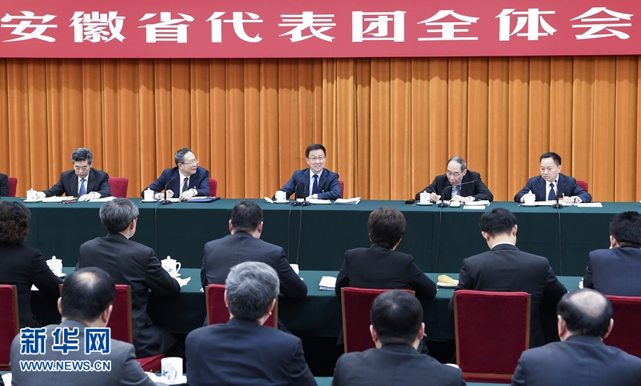 3月12日,中共中央政治局常委、國務院副總理韓正參加十三屆全國人大二次會議安徽代表團的審議。 新華社記者 張領 攝