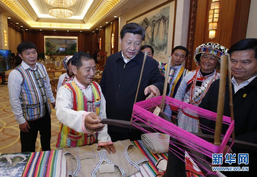2015年1月20日,習(xí)近平向獨(dú)龍族群眾代表詢(xún)問(wèn)民族特有生產(chǎn)工具使用情況