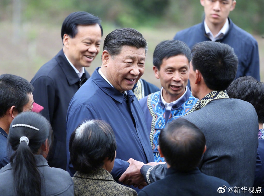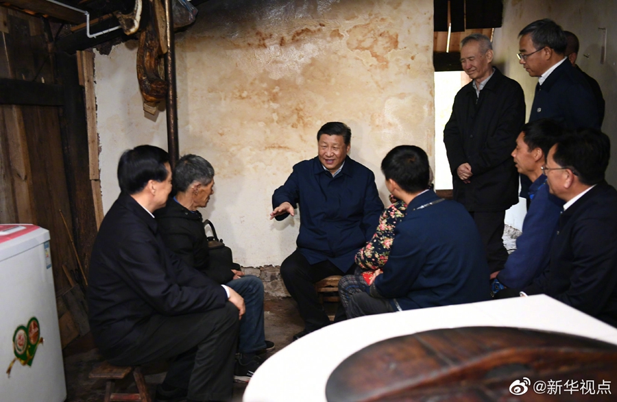 15日下午,正在重慶市調(diào)研的習(xí)近平總書記來(lái)到石柱土家族自治縣中益鄉(xiāng)華溪村村民、老黨員馬培清家中,同村民代表、扶貧干部圍坐院中,共話脫貧攻堅(jiān)。習(xí)近平說(shuō):“小康不小康,關(guān)鍵看老鄉(xiāng),關(guān)鍵看脫貧攻堅(jiān)工作做得怎么樣。我今天乘飛機(jī)、坐火車、坐汽車,先后用了三種交通工具,專程來(lái)這里看望大家??吹酱蠹也怀畛浴⒉怀畲逃?、醫(yī)療、住房安全越來(lái)越有保障,心里感到很托底?!绷?xí)近平囑咐大家,幸福是奮斗出來(lái)的,脫貧致富不能等靠要,既然黨的政策好,就要努力向前跑。(文字:張曉松 攝影:鞠鵬、謝環(huán)馳、丁海濤)?