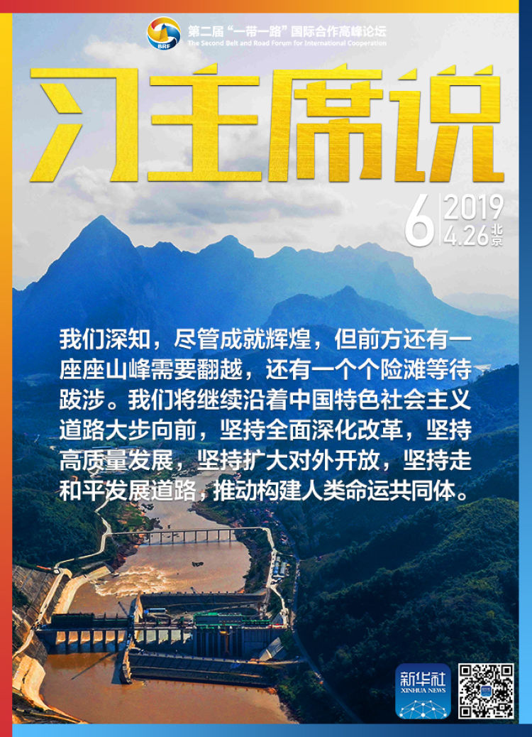 6. 我們深知,盡管成就輝煌,但前方還有一座座山峰需要翻越,還有一個(gè)個(gè)險(xiǎn)灘等待跋涉。我們將繼續(xù)沿著中國(guó)特色社會(huì)主義道路大步向前,堅(jiān)持全面深化改革,堅(jiān)持高質(zhì)量發(fā)展,堅(jiān)持?jǐn)U大對(duì)外開放,堅(jiān)持走和平發(fā)展道路,推動(dòng)構(gòu)建人類命運(yùn)共同體。