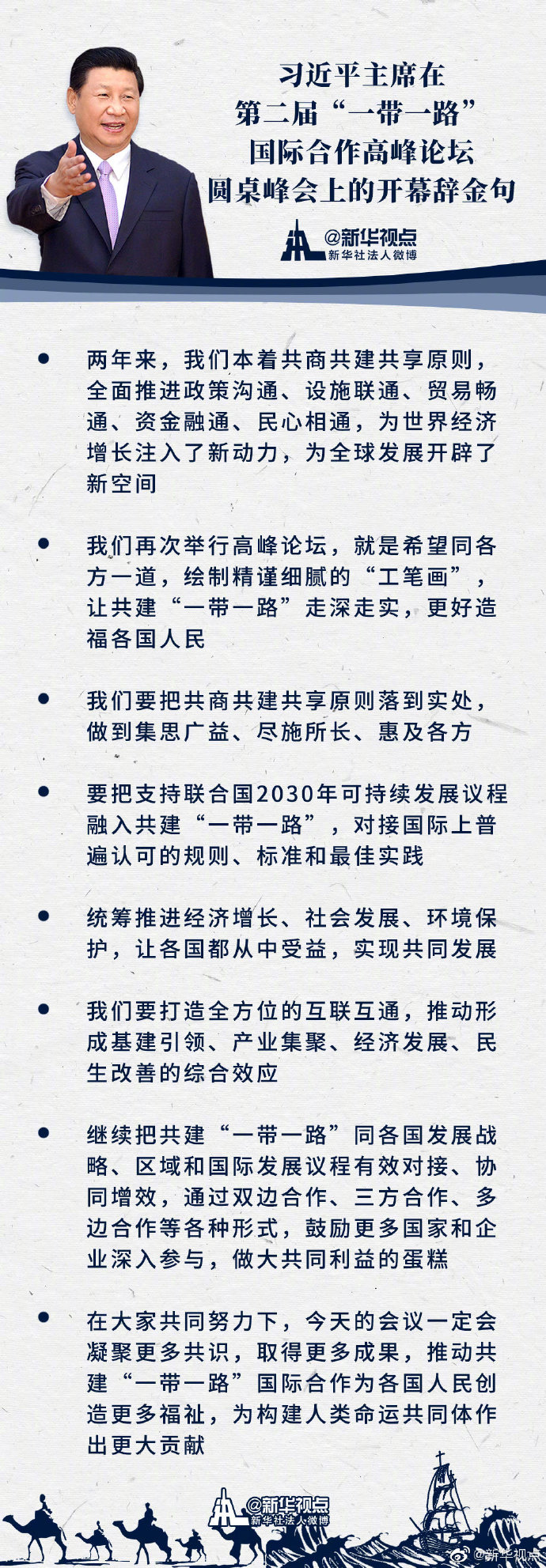 一圖速覽習(xí)近平主席在第二屆“一帶一路”國際合作高峰論壇圓桌峰會上的開幕辭金句