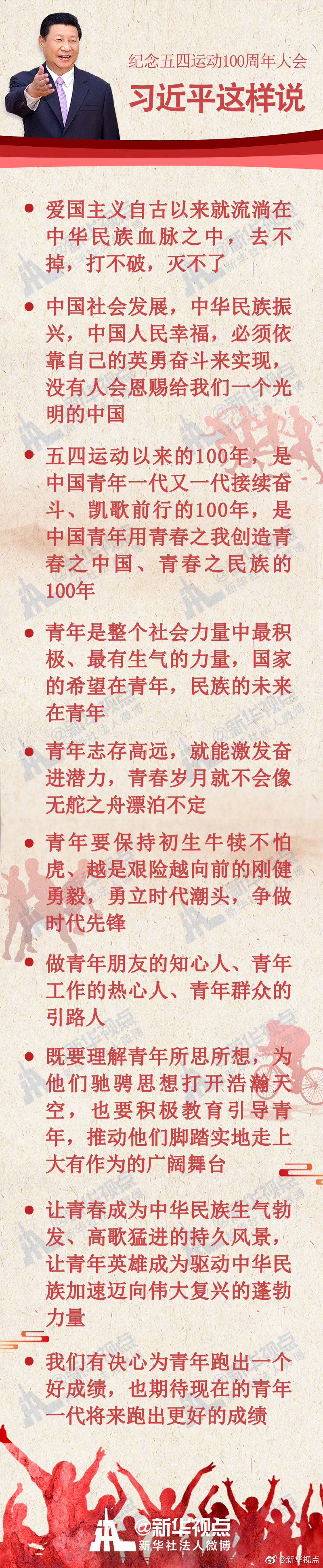 紀(jì)念五四運(yùn)動100周年大會 習(xí)近平這樣說