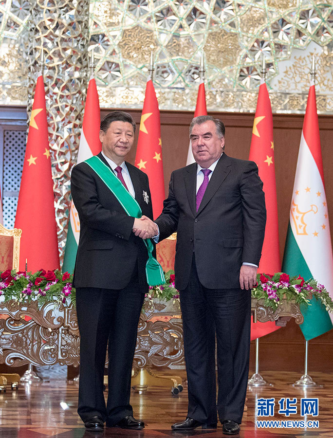 習近平表示,拉赫蒙總統(tǒng)授予我“王冠勛章”,飽含著全體塔吉克斯坦人民對中國人民的深情厚誼,我對此十分珍視。我愿同拉赫蒙總統(tǒng)一道,推動中塔全面戰(zhàn)略伙伴關(guān)系不斷邁上新臺階,更好造福兩國人民。
