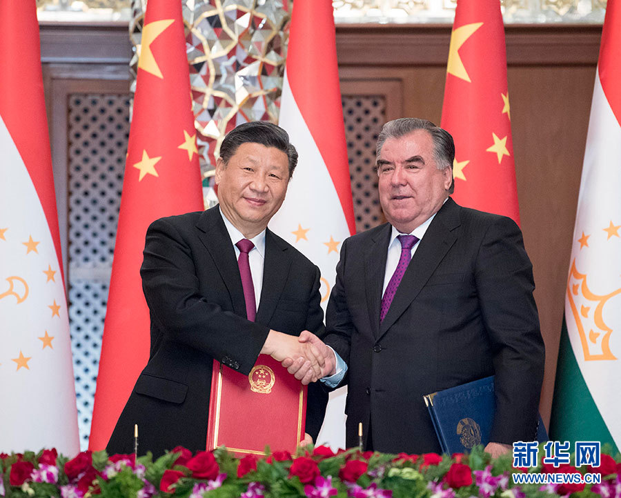 隨后,兩國(guó)元首簽署《中華人民共和國(guó)和塔吉克斯坦共和國(guó)關(guān)于進(jìn)一步深化全面戰(zhàn)略伙伴關(guān)系的聯(lián)合聲明》,并見(jiàn)證多項(xiàng)雙邊合作文件的交換。