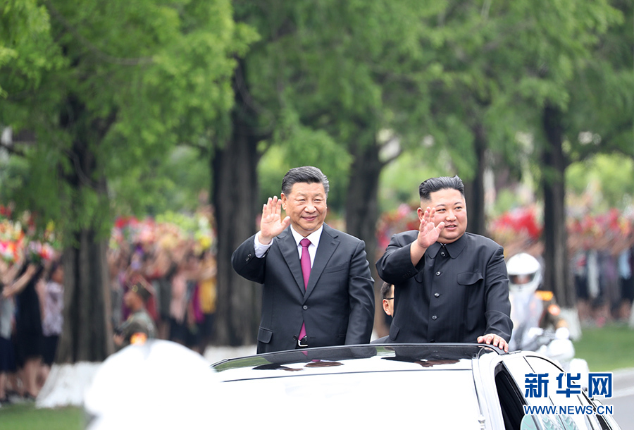 6月20日,中共中央總書記、國家主席習(xí)近平乘專機(jī)抵達(dá)平壤,開始對朝鮮民主主義人民共和國進(jìn)行國事訪問。朝鮮勞動黨委員長、國務(wù)委員會委員長金正恩和夫人李雪主到機(jī)場熱情迎接習(xí)近平和夫人彭麗媛。朝方在機(jī)場舉行隆重歡迎儀式。歡迎儀式結(jié)束后,習(xí)近平與金正恩同車前往錦繡山太陽宮廣場,沿途數(shù)十萬群眾夾道歡迎。 新華社記者 申宏 攝