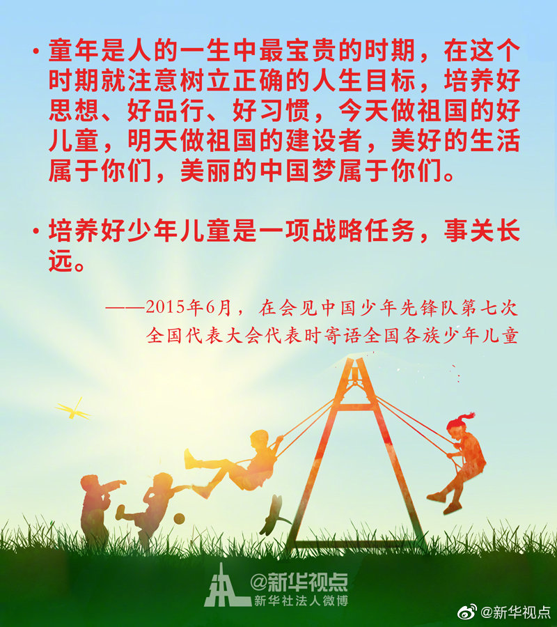 少年兒童是祖國的花朵,民族的希望。幼有所育,讓每一名少年兒童都能伴隨著時(shí)代的腳步茁壯成長,是全社會(huì)共同的心愿。習(xí)近平總書記始終關(guān)心少年兒童的身體健康和成長成才。黨的十八大以來,習(xí)近平總書記這樣說?