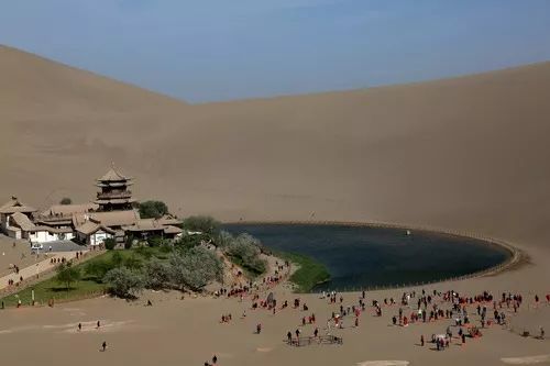 游客在甘肅省敦煌市鳴沙山月牙泉景區(qū)游覽。新華社發(fā)(張曉亮 攝)