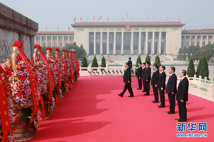 9月30日上午,習(xí)近平、李克強(qiáng)、栗戰(zhàn)書、汪洋、王滬寧、趙樂際、韓正、王岐山等黨和國家領(lǐng)導(dǎo)人來到北京天安門廣場,出席烈士紀(jì)念日向人民英雄敬獻(xiàn)花籃儀式。儀式前,習(xí)近平等來到毛主席紀(jì)念堂瞻仰毛澤東同志遺容。新華社記者 鞠鵬 攝