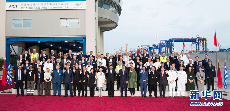 當(dāng)?shù)貢r間11月11日,國家主席習(xí)近平和夫人彭麗媛在希臘總理米佐塔基斯夫婦陪同下,共同參觀中遠海運比雷埃夫斯港項目。這是習(xí)近平夫婦和米佐塔基斯夫婦同中遠當(dāng)?shù)貑T工等合影。 新華社記者 黃敬文 攝