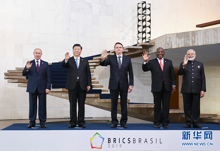 當(dāng)?shù)貢r(shí)間11月14日,金磚國(guó)家領(lǐng)導(dǎo)人第十一次會(huì)晤在巴西首都巴西利亞舉行。巴西總統(tǒng)博索納羅主持會(huì)晤。中國(guó)國(guó)家主席習(xí)近平、俄羅斯總統(tǒng)普京、印度總理莫迪、南非總統(tǒng)拉馬福薩出席。這是五國(guó)領(lǐng)導(dǎo)人合影。 新華社記者 謝環(huán)馳 攝