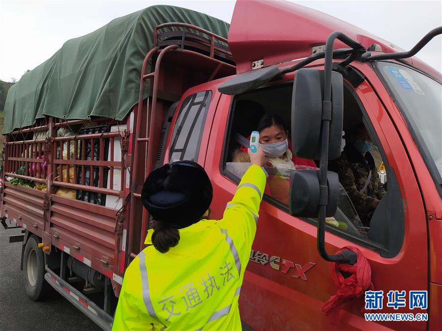 四川省交通運輸廳高速公路交通執(zhí)法第五支隊雅康大隊隊長強薇在雅康高速公路上進行防疫檢查(2月1日攝)。 新華社發(fā)