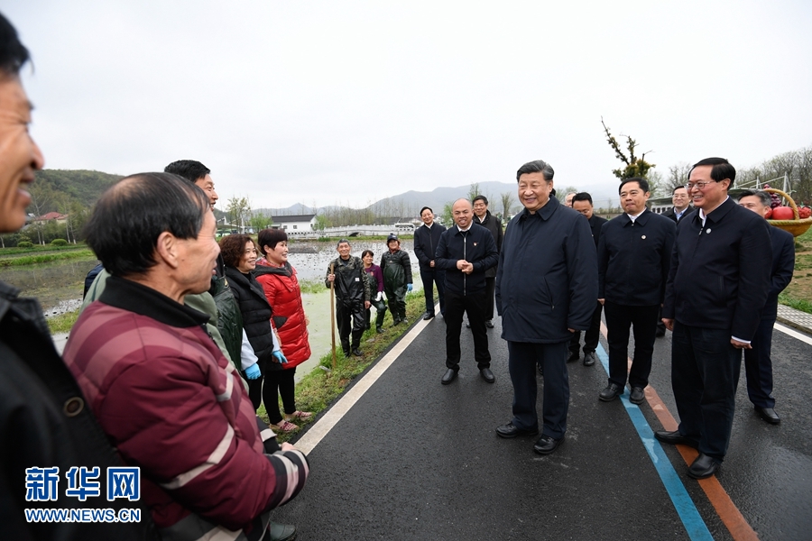 3月30日,中共中央總書(shū)記、國(guó)家主席、中央軍委主席習(xí)近平在浙江省安吉縣天荒坪鎮(zhèn)余村考察,同村民們親切交談,了解該村多年來(lái)踐行“綠水青山就是金山銀山”理念、推動(dòng)綠色發(fā)展發(fā)生的巨大變化。 新華社記者 申宏 攝