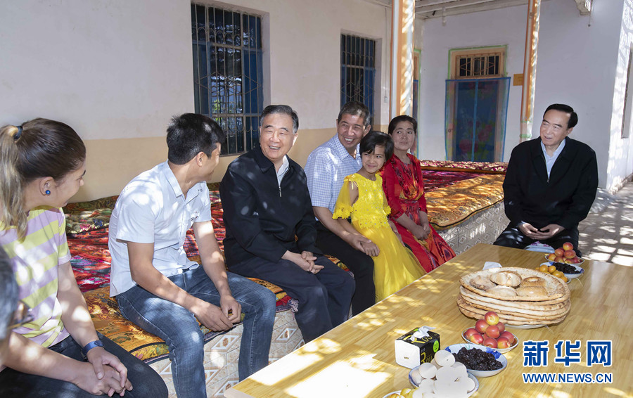 6月8日至12日,中共中央政治局常委、全國政協(xié)主席汪洋在新疆調(diào)研。這是6月11日,汪洋在喀什調(diào)研時與當(dāng)?shù)卮迕裼H切交談。 新華社記者 李濤 攝