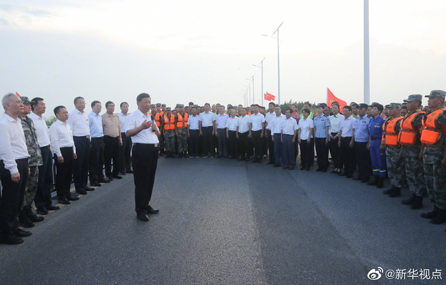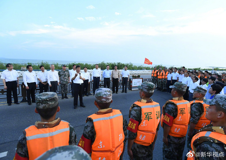 19日下午,正在安徽考察調(diào)研的習(xí)近平總書記來到合肥市肥東縣十八聯(lián)圩生態(tài)濕地蓄洪區(qū)巢湖大堤羅家疃段,察看巢湖水勢水情。他強(qiáng)調(diào),洪水退后,要防止蓄洪區(qū)內(nèi)出現(xiàn)水退人進(jìn)的現(xiàn)象。我們要實(shí)現(xiàn)人與自然和諧相處,就不能同自然爭奪發(fā)展空間。八百里巢湖要用好,更要保護(hù)好、治理好,使之成為合肥這個(gè)城市最好的名片。(文字記者:張曉松 攝影記者:鞠鵬 王曄 燕雁)