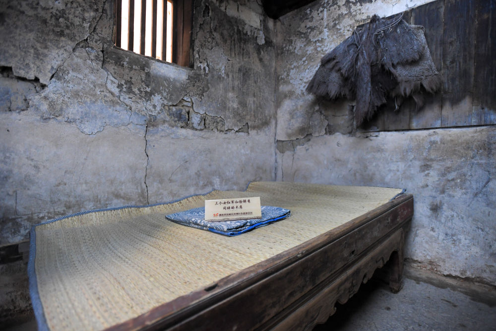 “在湖南汝城縣沙洲村,3名女紅軍借宿徐解秀老人家中,臨走時,把自己僅有的一床被子剪下一半給老人留下了?!?/p>