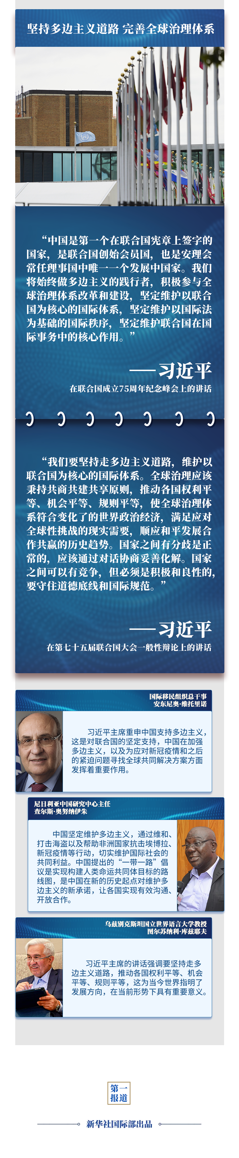在聯(lián)合國成立75周年之際,習主席通過視頻方式,在聯(lián)合國這一多邊外交舞臺闡述關(guān)于國際秩序和人類前途命運的中國主張,為國際社會應對全球性挑戰(zhàn)、推動共同發(fā)展指明方向,為世界各國攜手構(gòu)建人類命運共同體、共創(chuàng)更加美好的未來注入信心和動力——