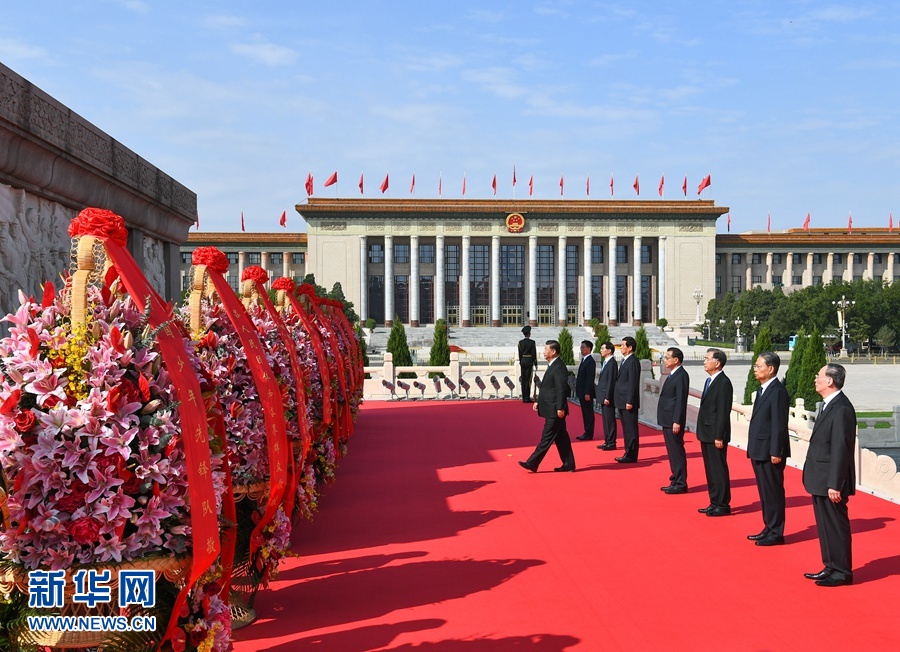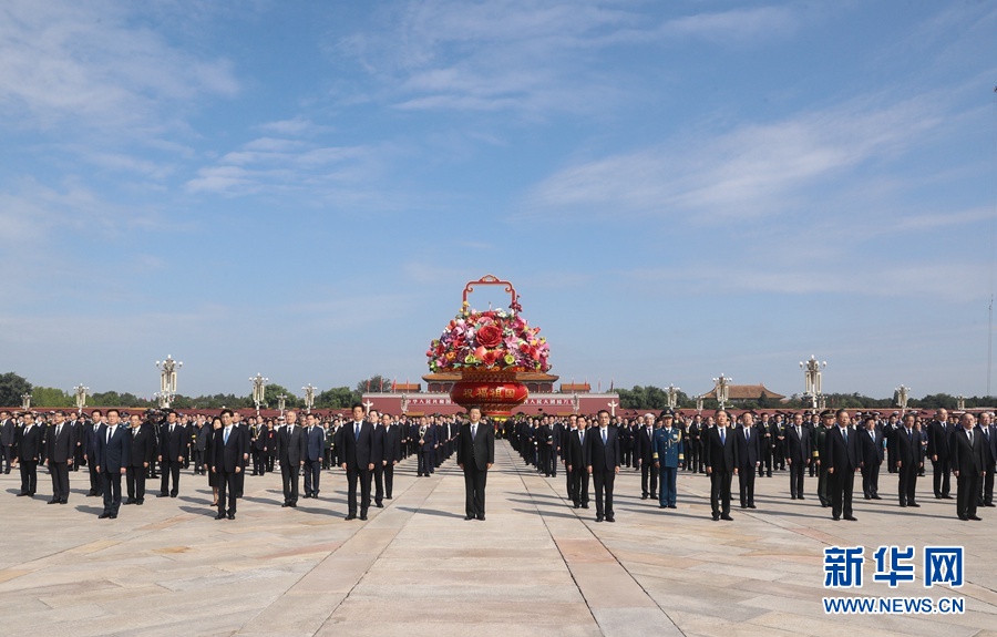 9月30日上午,黨和國家領(lǐng)導(dǎo)人習(xí)近平、李克強(qiáng)、栗戰(zhàn)書、汪洋、王滬寧、趙樂際、韓正、王岐山等來到北京天安門廣場(chǎng),出席烈士紀(jì)念日向人民英雄敬獻(xiàn)花籃儀式。 新華社記者 謝環(huán)馳 攝