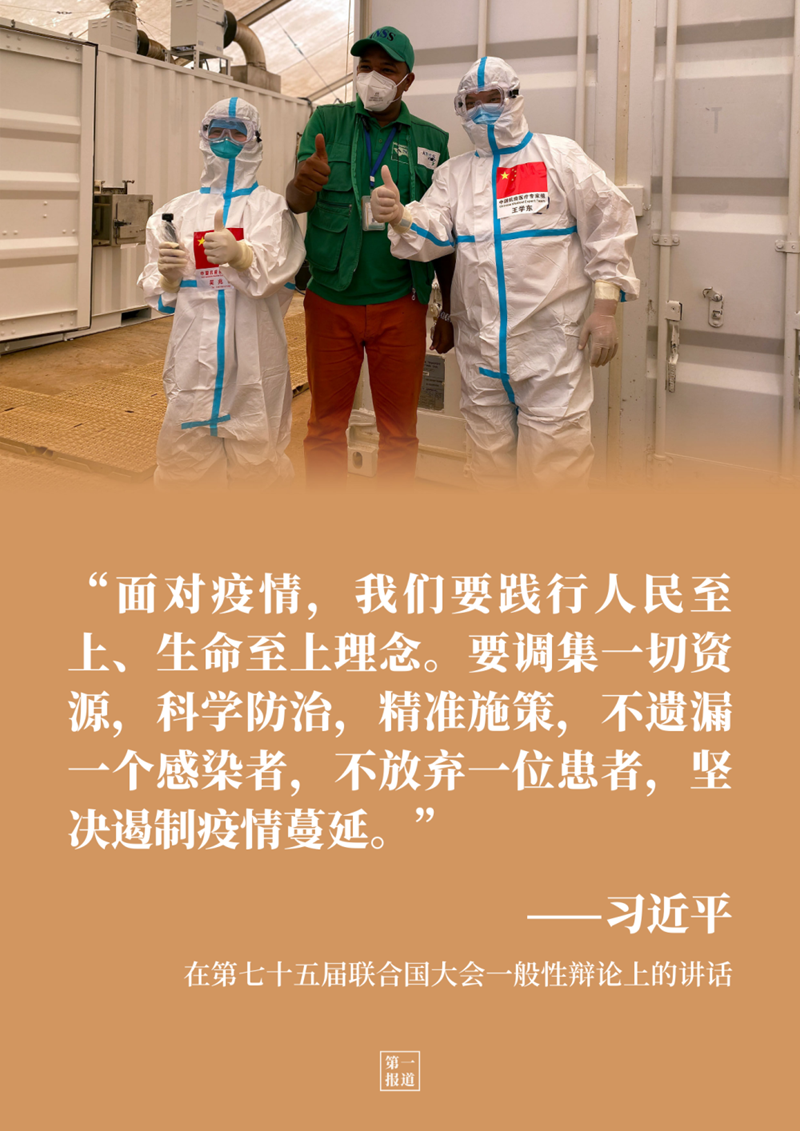 在第七十五屆聯(lián)合國(guó)大會(huì)一般性辯論上發(fā)表重要講話時(shí),習(xí)主席提出抗擊新冠肺炎疫情的4點(diǎn)倡議,第一條就是“踐行人民至上、生命至上理念”。