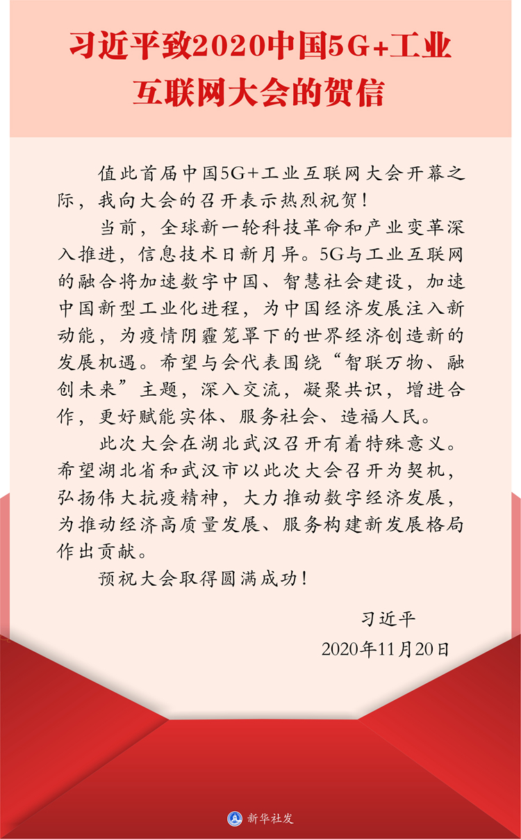 習(xí)近平致2020中國(guó)5G+工業(yè)互聯(lián)網(wǎng)大會(huì)的賀信