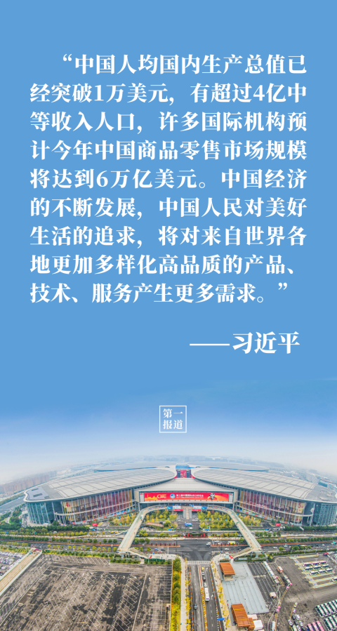 “中國的發(fā)展離不開世界,世界的繁榮也需要中國。”談到中國大市場蘊(yùn)藏的大機(jī)遇,習(xí)主席用事實和數(shù)據(jù)說話: