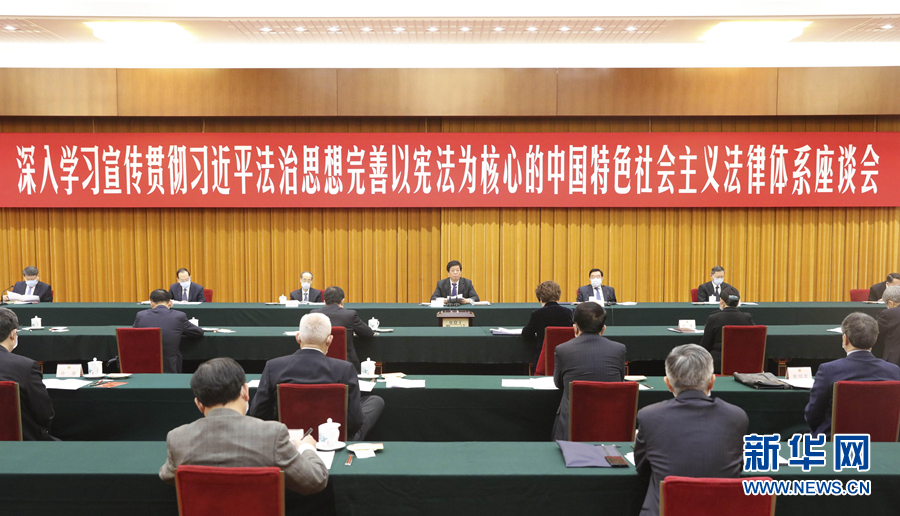 中央宣傳部、全國人大憲法法律委、司法部、教育部、最高人民法院、最高人民檢察院、中國法學(xué)會(huì)、中國社科院有關(guān)負(fù)責(zé)同志和全國人大代表在座談會(huì)作了發(fā)言。