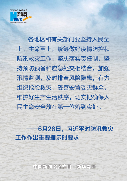 要堅(jiān)持人民至上、生命至上。人民高于一切,生命重于泰山。無(wú)論防控疫情,還是抗洪搶險(xiǎn),都要切實(shí)把確保人民生命安全放在第一位落到實(shí)處。在做好疫情防控的同時(shí),一定要有力組織搶險(xiǎn)救災(zāi),強(qiáng)化應(yīng)急搶險(xiǎn)人員轉(zhuǎn)移安置,落實(shí)基層轉(zhuǎn)移避險(xiǎn)的責(zé)任,細(xì)化避險(xiǎn)轉(zhuǎn)移預(yù)案,在需要的時(shí)候果斷轉(zhuǎn)移有危險(xiǎn)的群眾,妥善安置受災(zāi)群眾,千方百計(jì)減少人員傷亡。