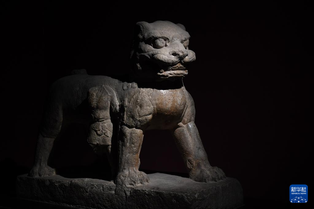 这是在西安碑林博物馆拍摄的唐代石狮(5月9日摄)。古代中国的狮子多通过丝绸之路由外国进贡而来。
