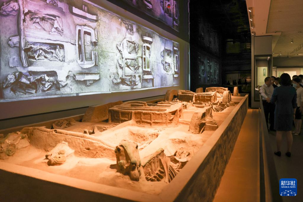 5月16日,观众在参观展出的西周时期车马坑。