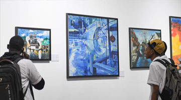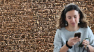 5月16日,观众在天津数字艺术博物馆“梵高的世界”全景数字艺术互动大展预展上通过手机扫描展品观看AR动画。