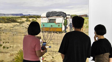 游客在西安地铁大雁塔站“星汉灿烂·未央遗珍——汉”主题展览上打卡留念(5月27日摄)。