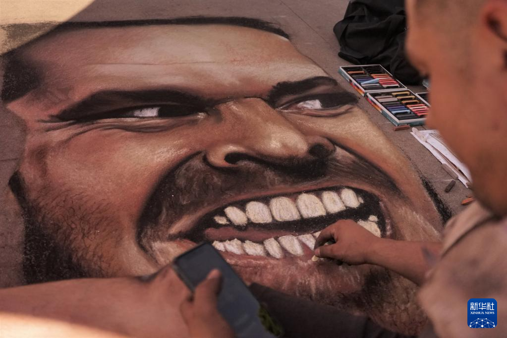 6月18日,艺术工作者在美国加利福尼亚州帕萨迪纳市举行的粉笔画节上创作。
