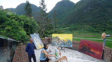 7月12日,作家何建明(左一)在北大红楼为观众讲解从北京大学走出的雨花英烈的事迹。
