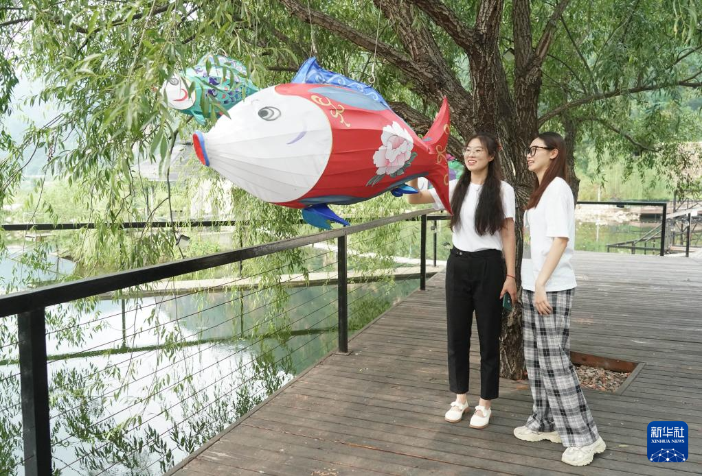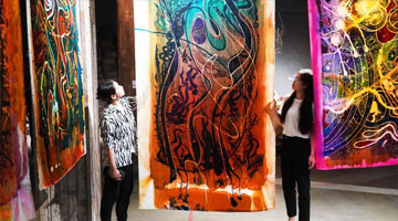 8月8日,观众在位于北京市平谷区的万圣谷美术馆参观艺术作品。