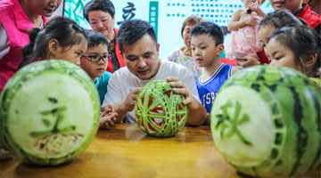 8月8日,参加暑期社会实践的大学生在活动开幕式现场表演节目。