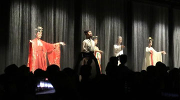 8月15日,模特在艺术节开幕式上展示用废弃布料设计制作的礼服。