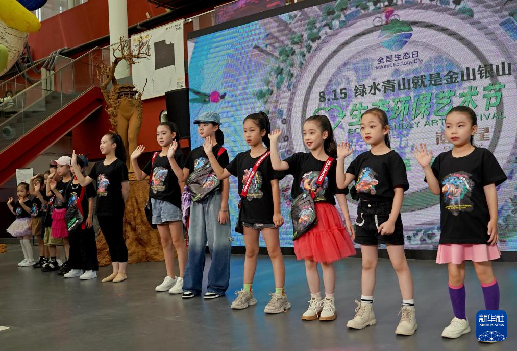 8月15日,小模特在艺术节开幕式上展示以海洋生物多样性保护为主题的服装。