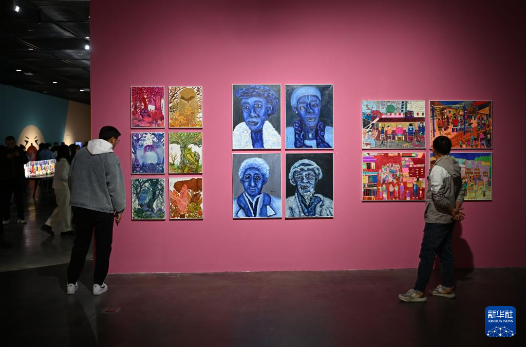 11月25日,参观者在银川当代美术馆观看“一颗种子的旅行”儿童艺术展。