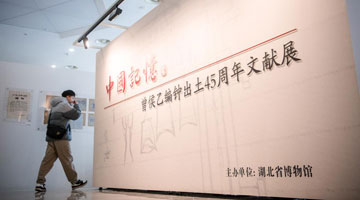 12月14日,一名游客在罗小聪的展览馆内欣赏“剔青”作品。