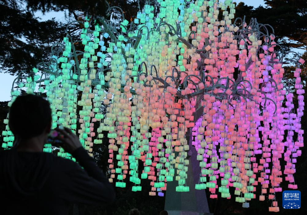 这是12月23日在美国旧金山金门公园拍摄的灯饰。