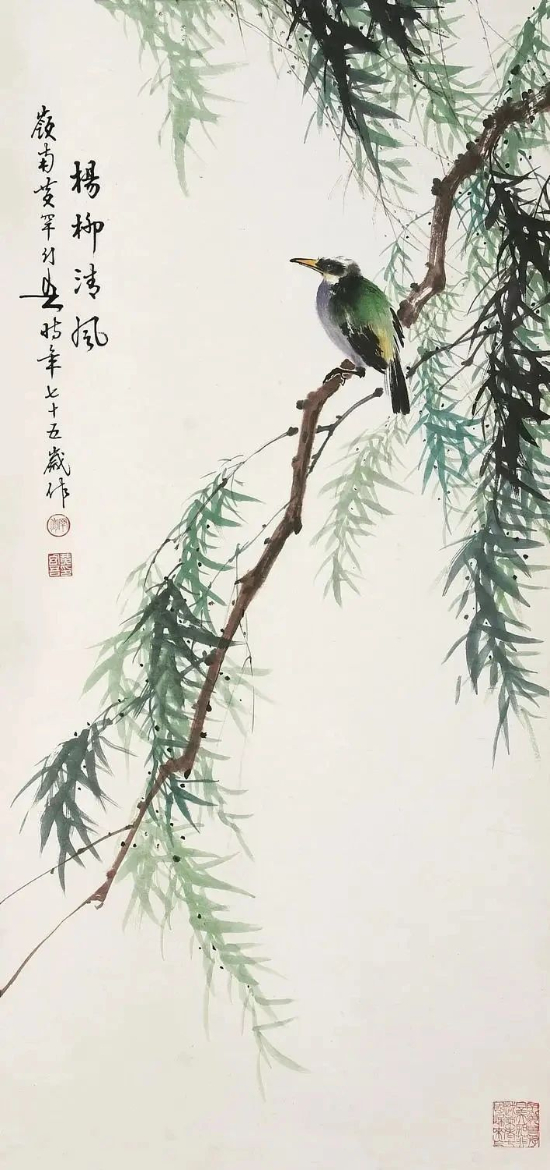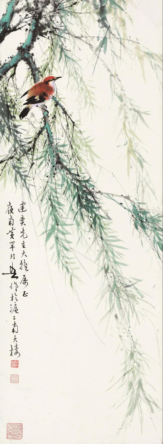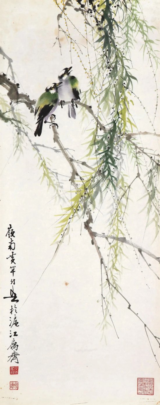 黄幻吾(1906.9-1985.7),名罕,字幻吾,号罕僧,晚年称罕翁。黄幻吾的绘画被评论为:“精研国画,善绘山水、人物、花卉、鱼虫、鸟兽,尤以花鸟画、山水画功夫独到,刻划真切动人、栩栩如生”。他的作品富有新意,清新秀丽,生机盎然,能把水墨、彩色熔铸一炉。他笔下的柳树气韵飘逸,树上的鸟儿也真切动人、栩栩如生,做到了情调美、色彩美、构图美、形象美。