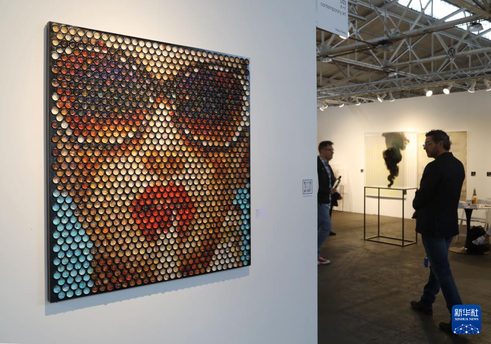 4月25日,在美国旧金山梅森堡中心举行的旧金山艺术博览会上,人们观看艺术作品。